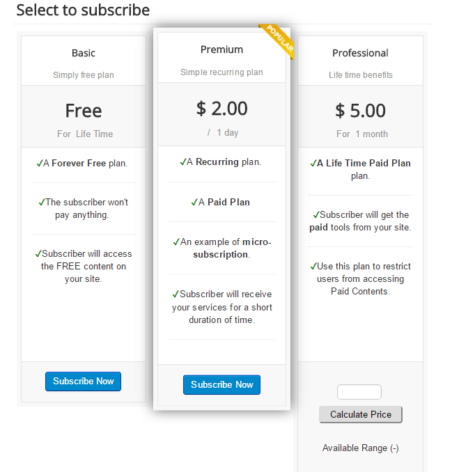 Enables your users to subscribe to your site for certain services